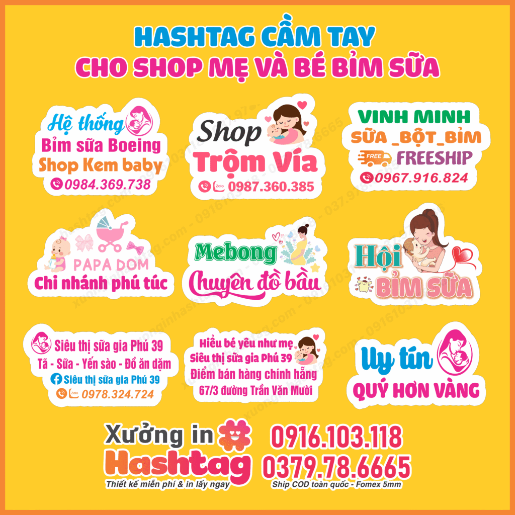 Các shop thường đặt làm bảng hashtag mẹ và bé với nội dung: