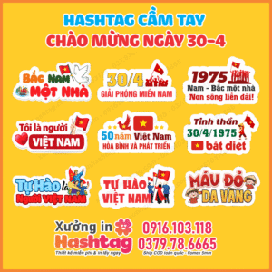 HASHTAG CẦM TAY 30/4 – 100+ MẪU ĐẸP, IN NHANH LẤY NGAY, GIÁ TẬN XƯỞNG